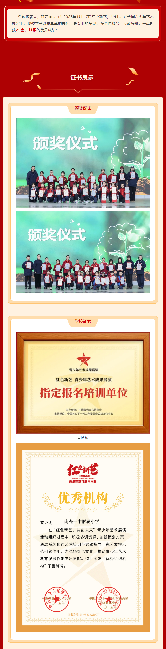 【25金】祝贺我校学子在“红色新艺,共创未来”全国青少年艺术展演中载誉而归!